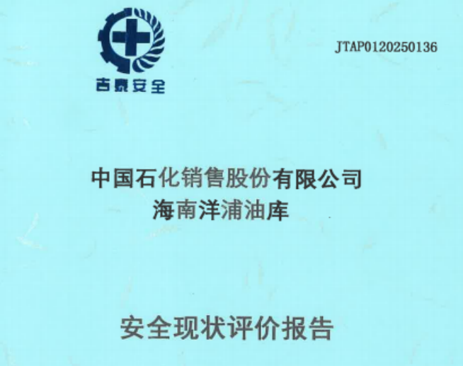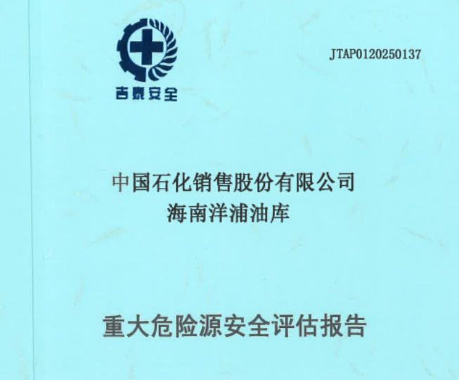 JTAP0120250137-中國石化銷售股份有限公司海南洋浦油庫重大危險源評估